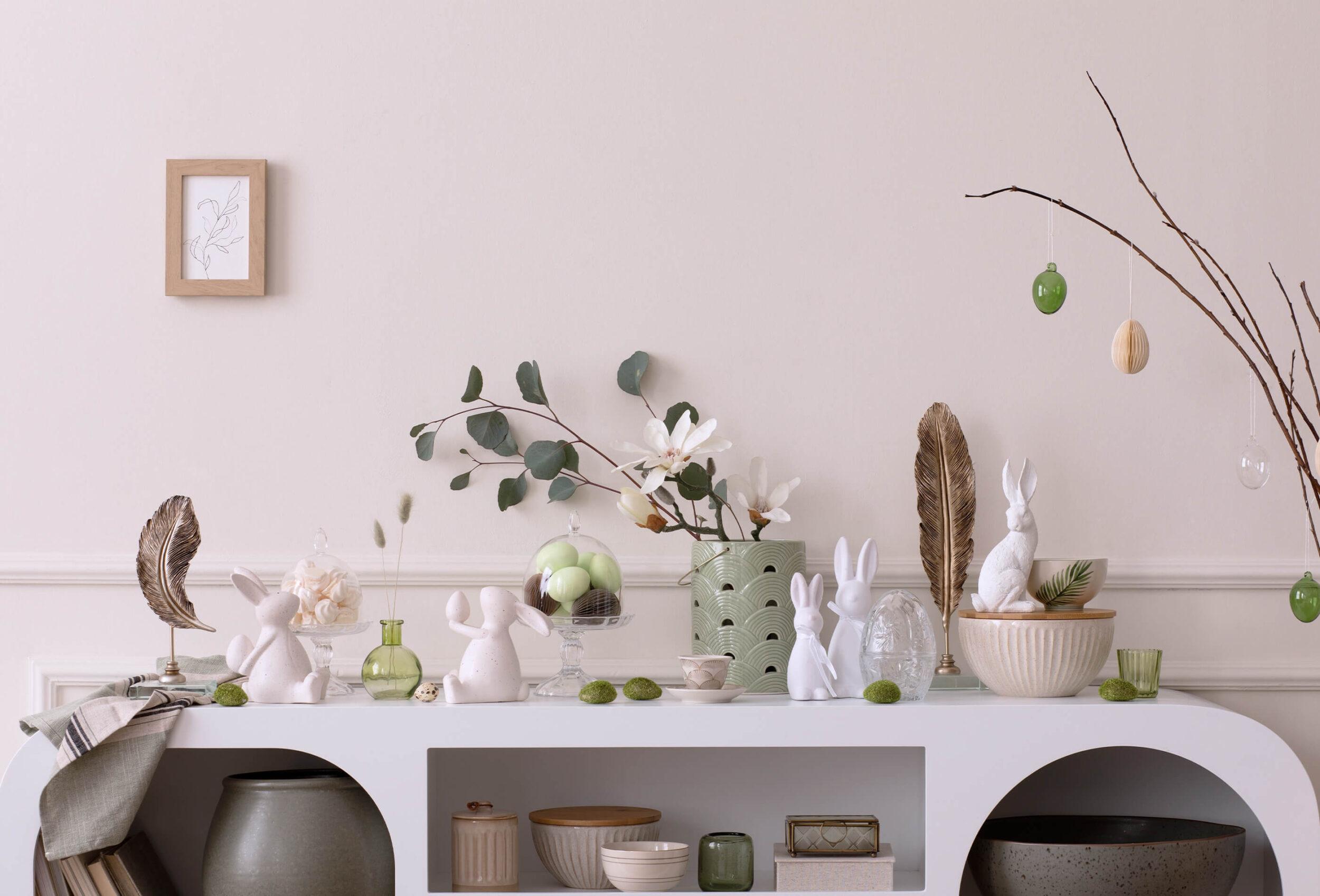 - Lassen Sie typische Figuren wie Hasen, Küken und Lämmer in Ihre Osterdeko einfließen.